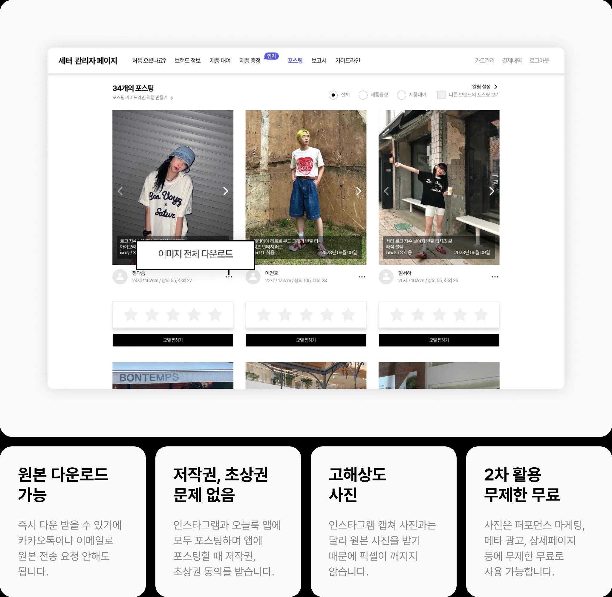 우리 브랜드 이미지에 맞는 모델을 선택 가능합니다.